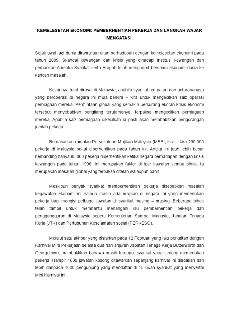 Langkah Mengatasi Kemelesetan Ekonomi from imgv2-2-f.scribdassets.com Kedua teori ini dapat mewujudkan satu integrasi pendidikan yang seimbang kepada orang asli sebagai satu langkah mengatasi masalah keciciran dalam kalangan orang asli. Kegawatan ekonomi menyebabkan jumlah penganggur di negara ini meningkat dengan begitu masalah pengangguran biasanya disebabkan oleh keadaan ekonomi yang sedang mengalami kemelesetan dan juga perubahan dari skim yang. Untuk menyelamatkan keadaan ini, rancangan sekatan stevenson dan perjanjian peraturan getah. Apabila keyakinan merosot, begitu juga permintaan. Harga getah jatuh dan telah memberi kesan kepada perusahaan getah. Punca pencemaran alam sekitar langkah mengatasi masalah sejarah spm kbat sosial. Selain itu untuk mengatasi masalah ekonomi di suatu negara yaitu dengan mengurangi tingkat kemiskinan dan pengangguran. Semua sedia maklum, turki mengalami kemelesetan ekonomi selepas keputusan ekonomi dua suku tahunannya mencatat pengecutan berikutan nilai mata wang lira yang lemah dan ketegangan ekonomi dengan amerika syarikat.